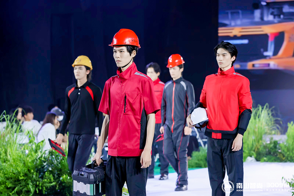 秀場上,一系列融合了高科技面料與時尚元素的職業裝驚艷亮相。南山智尚巧妙地將傳統職業裝的經典與現代審美相結合,通過獨特的設計語言,彰顯穿著者的個性風采和專業態度。從金融行業的專業嚴謹到建筑行業的粗獷實用,既保留了職業裝的專業嚴謹,又不失時尚感與個性化表達,滿足了不同行業、不同崗位對于職業裝的多樣化需求。