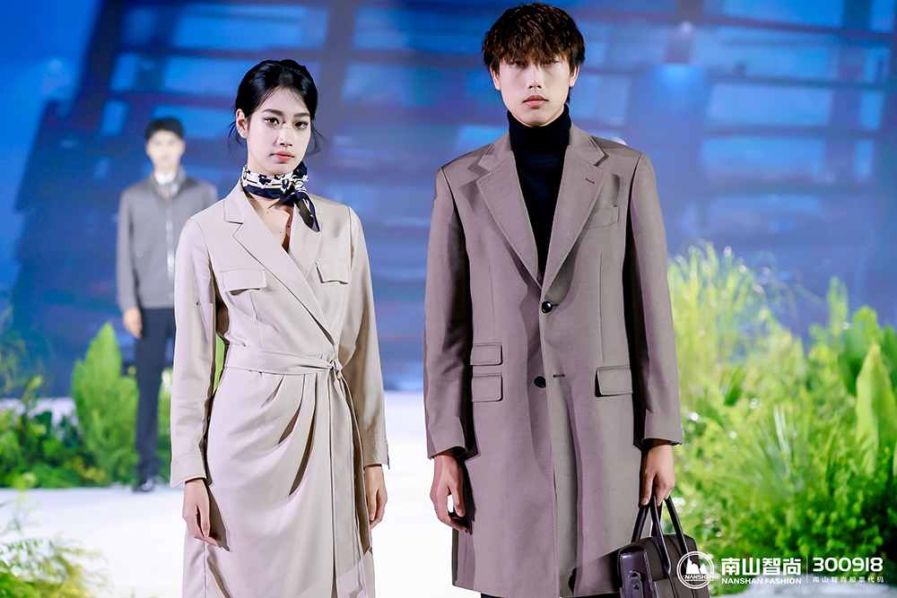 本次發布會中,南山智尚共展出時尚高級定制及職業裝兩大系列共計近百套服飾。